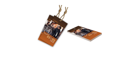 Hang Tags are typically rectangular and printed on sturdy stock with an optional hole for attachment to the product.