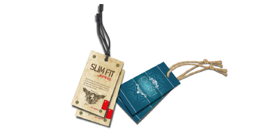 Hang Tags are typically rectangular and printed on sturdy stock with an optional hole for attachment to the product.