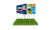 The most common order options are 24" x 6" on 4mm White Corrugated Plastic. Typically, Rider Signs are printed in full color on both sides (4/4) and placed on top of Yard Signs.